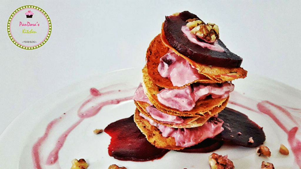Beetroot salad millefeuille with Roquefort and Walnut from Pandora’s Kitchen